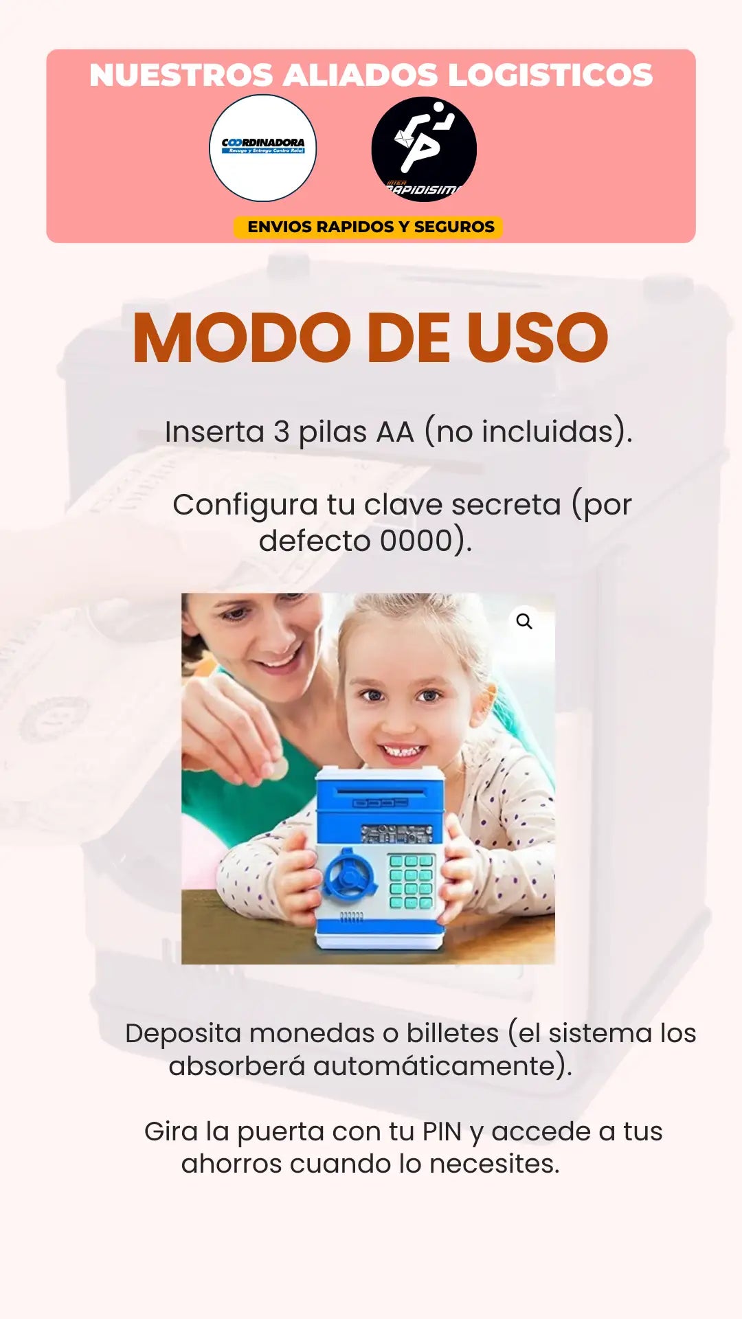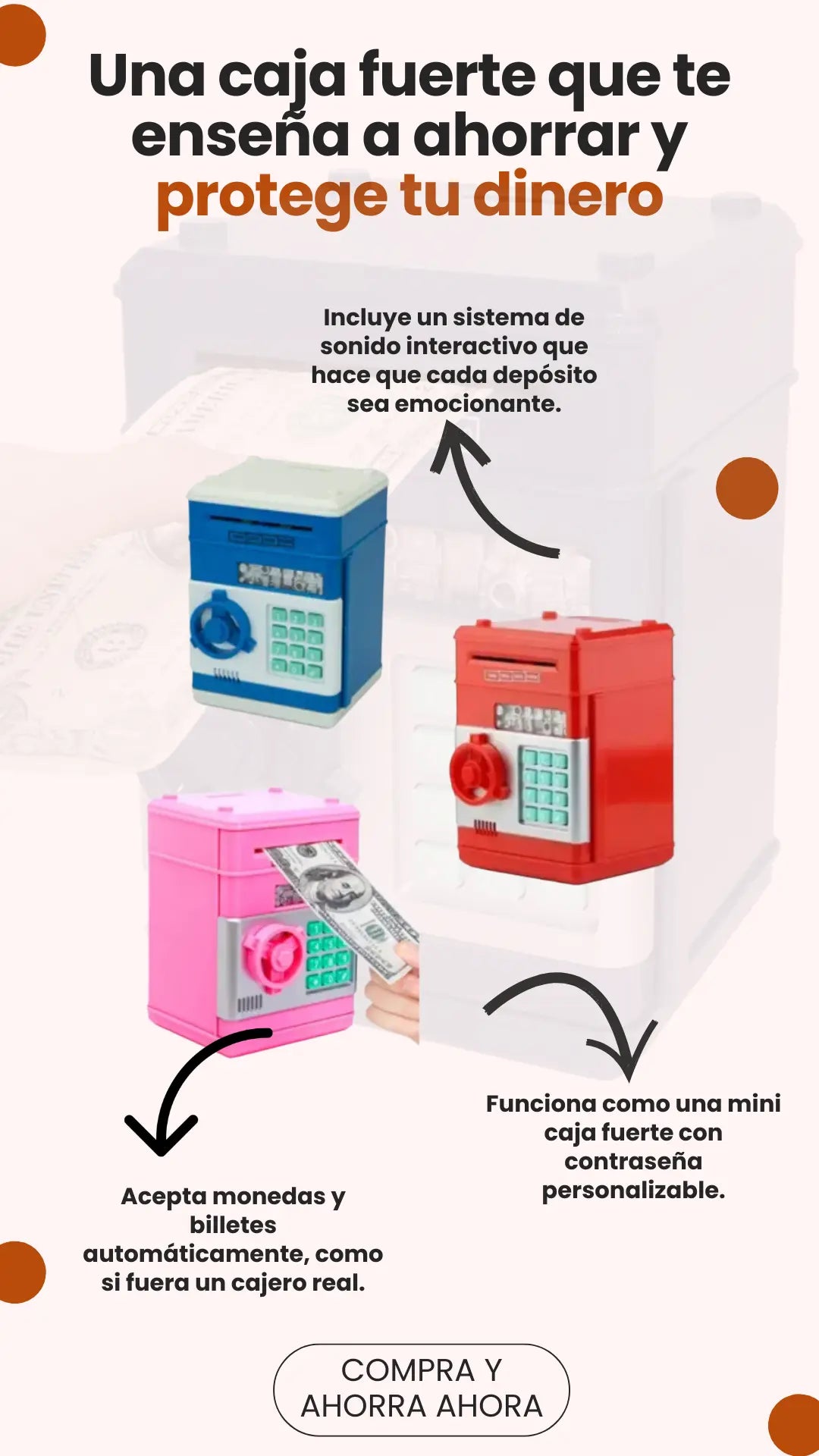 🚀 +50% más capacidad esta guarda hasta 600 monedas o 100 billetes. |
