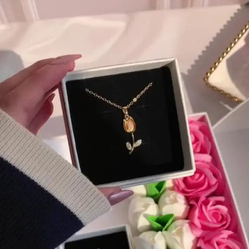 El Regalo Perfecto 💝 Collar + Pulsera Blanca Tulipán con Caja de Regalo GRATIS