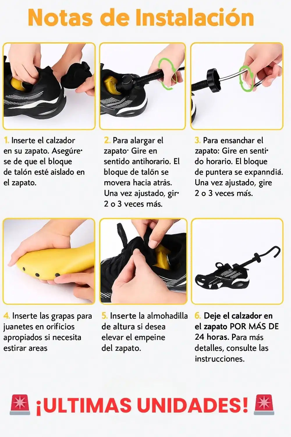 Los extensores de zapatos brindan comodidad y prolongan la vida útil de sus zapatos. Su diseño ajustable soluciona los problemas de calzado apretado y la presión en los pies. Disfrute de comodidad y ahorros sin comprar zapatos nuevos.