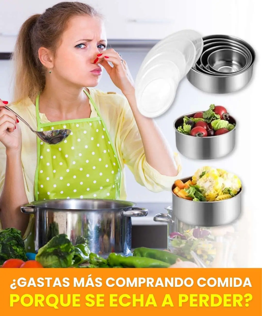 Olvídate de esas cocas plásticas que guardan olores asquerosos y te hacen pasar malos ratos. Con los bowls de acero inoxidable con tapa hermética, tu comida siempre olerá fresca, limpia y como recién hecha.