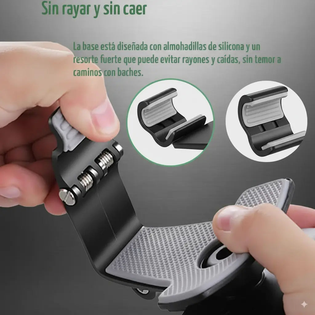 Porque lo último que quieres es soltar el timón para acomodar el celular en plena vía. Con este soporte siempre lo tendrás a la vista y bien asegurado.